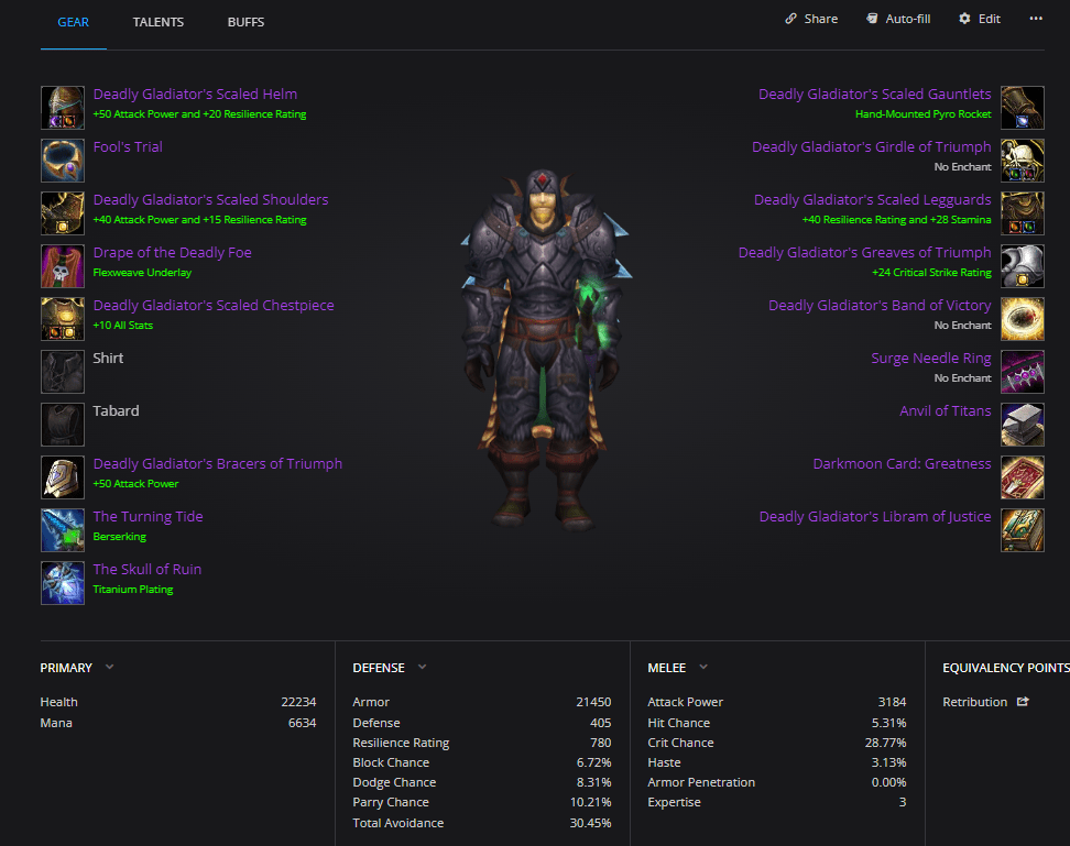 – Martelet du gladiateur fatal (l’arme pvp est à 1.6 de speed très légèrement moins bien que l’arme de kel’thuzad mais bien plus facile à avoir)