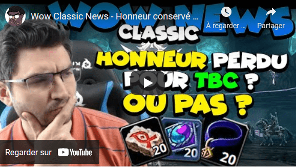 Wow Classic News – Honneur conservé pour TBC ? et Infos de la semaine Publié le 25 mai 2021 Ajouter aux favoris ← Voir tous les articles WOW CLASSICArticles similaires9 février 2026Guide Farm d’Essence Éternelle – WOTLK Classic9 février 2026Guide Paladin PVP Protection – WOTLK Classic12 novembre 2025Blizzard en roue libre : WoW devient un « Diablo 4.5 » solo, Mono touche, à 90$ et avec une nouvelle monnaie premium28 juillet 2025WOW MOP : Guide Guerrier Arme PVE